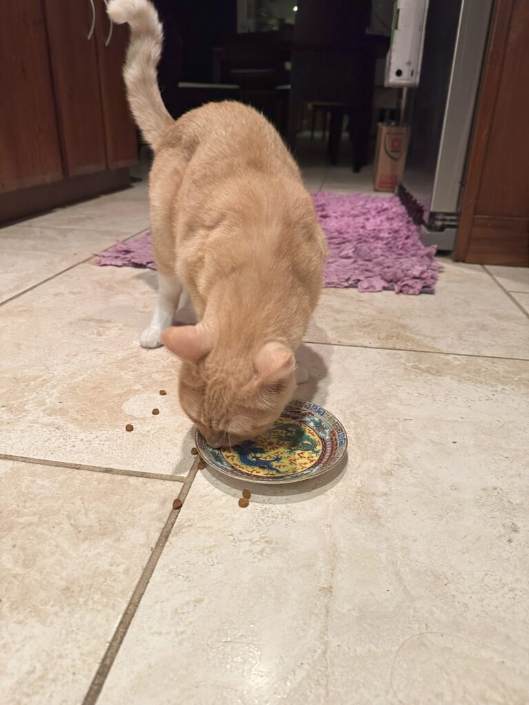 Hobbies: Begging to be fed moments after being fed, bunting (knocking my forehead into you repeatedly), conducting gravity experiments