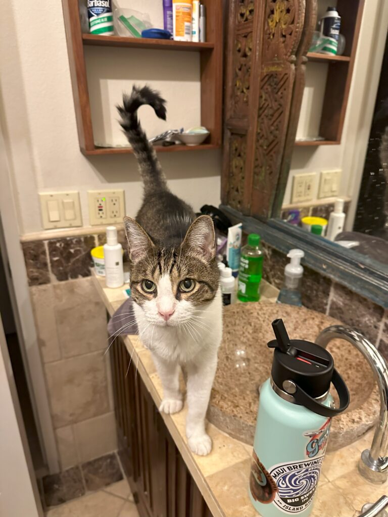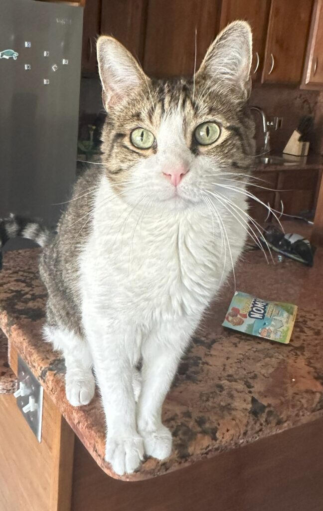 Hobbies: Yowling when I feel lonely, chirping when I’m happy, fetching anything you throw, eating any and all types of plastic and then barfing them up