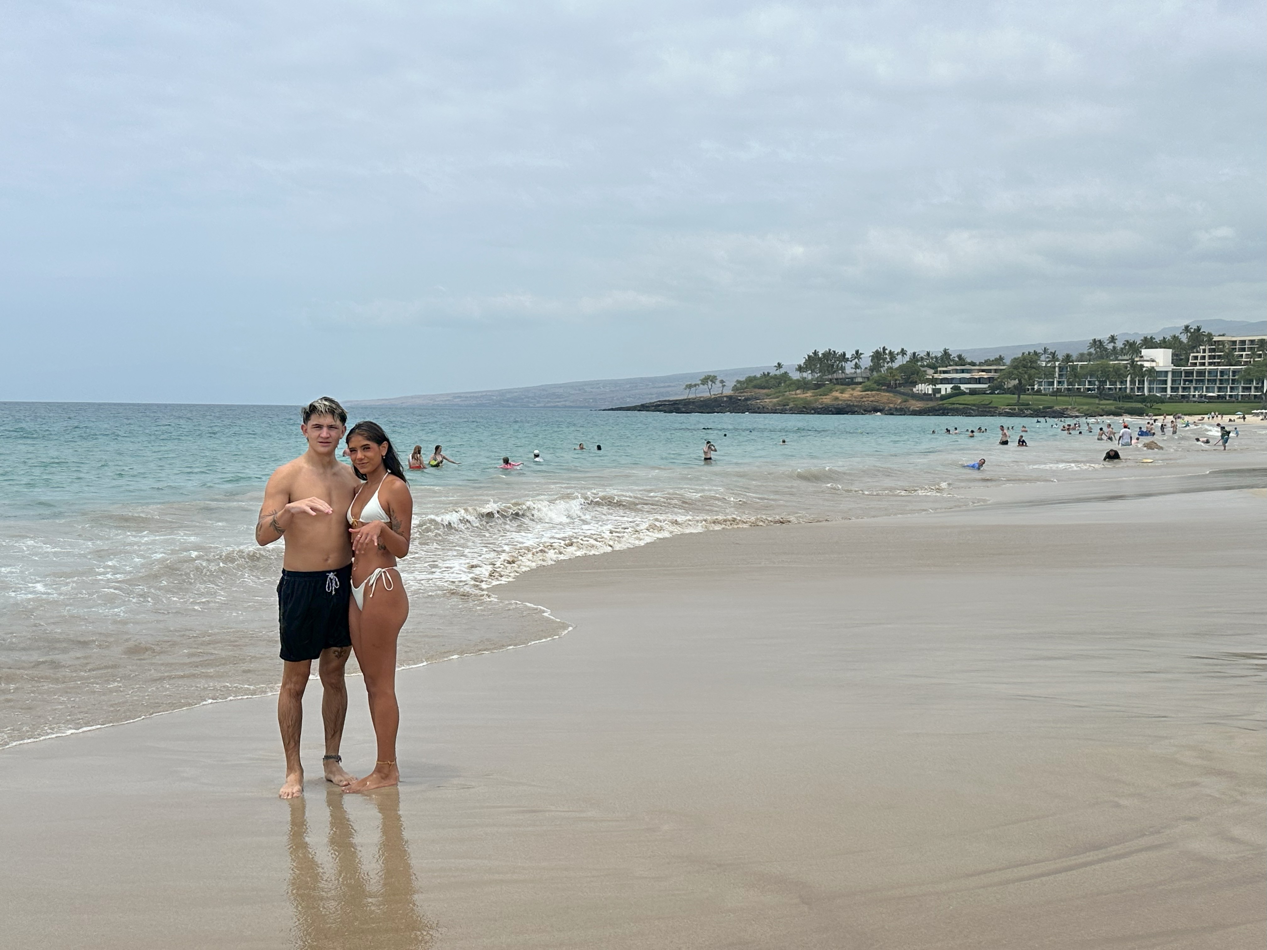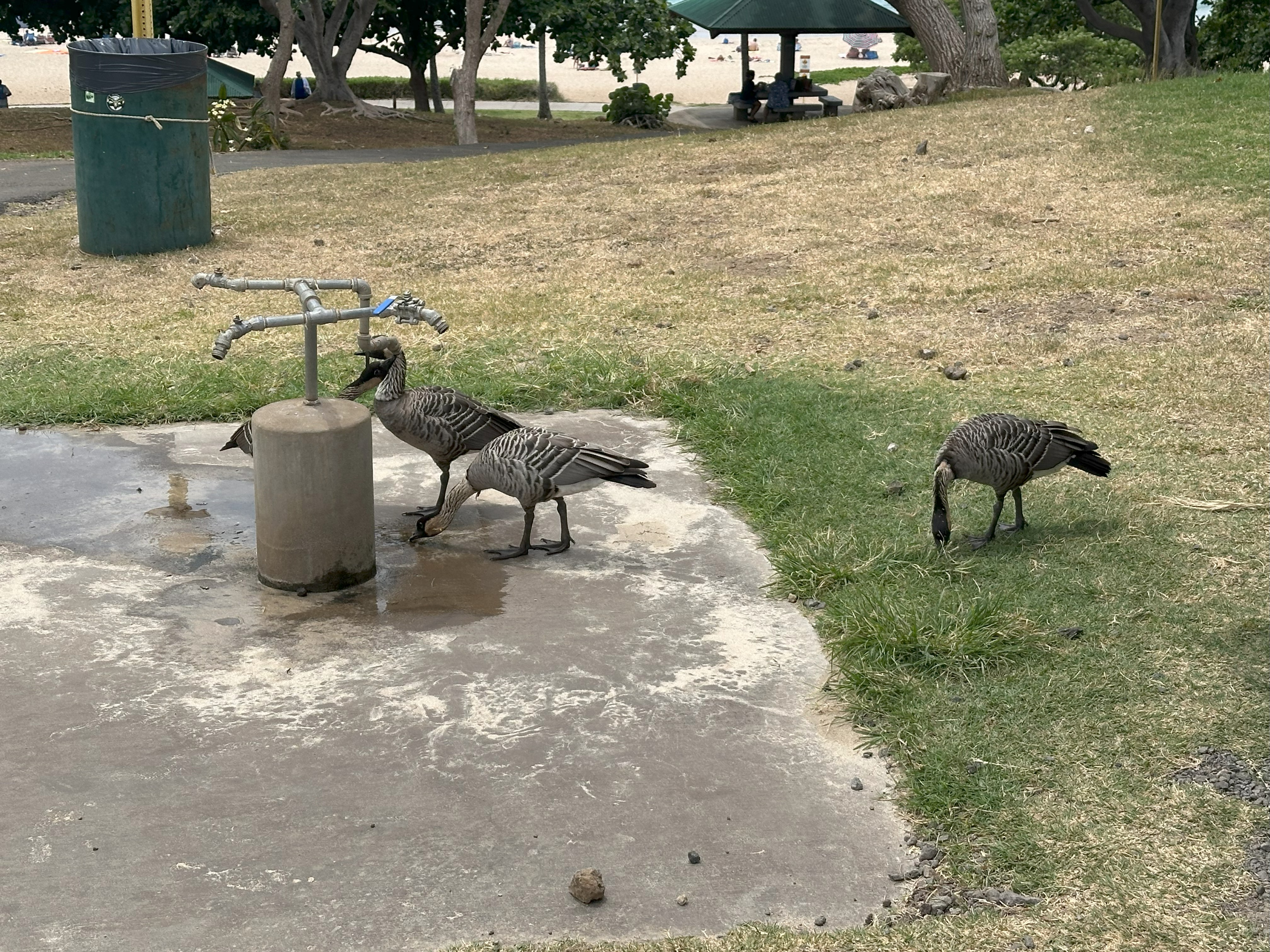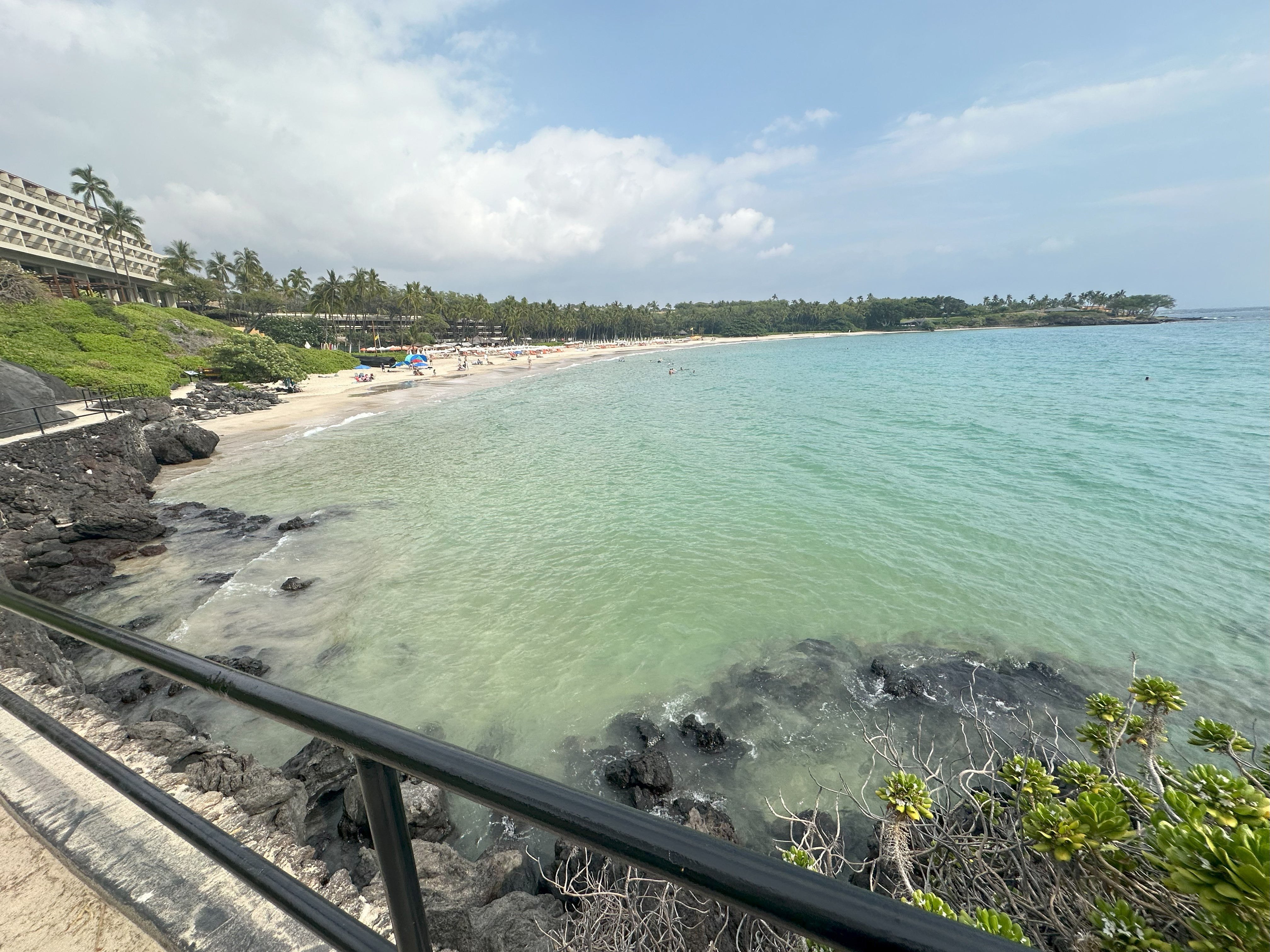 Our wonderful neighbors Sony and Gustavo had given us the lowdown on how to snorkel with mantas for free at the Mauna Kea Resort on the Kohala coast. The catch is that, while all beaches have to have public access in Hawai’i, they don’t have to provide unlimited parking. So public parking spots are few and we knew we may have to wait hours to get one. We stopped briefly at the Hapuna Beach, but we were unimpressed and quickly moved on, after admiring the nenes drinking from the shower.