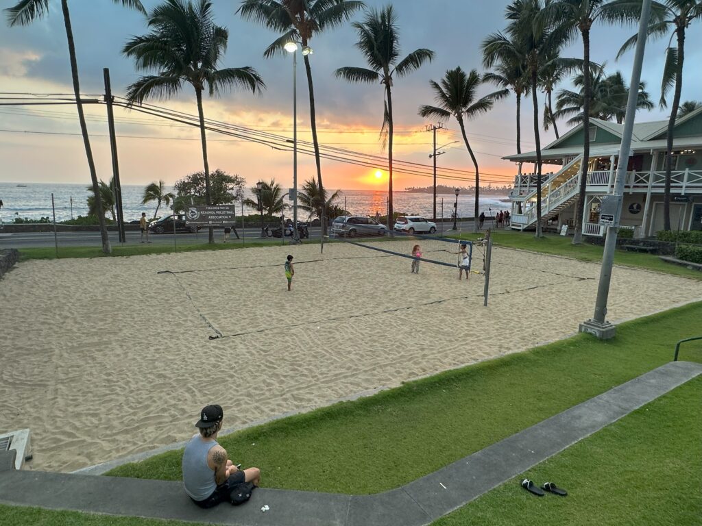 Anyway, I digress. Kona is pretty touristy but was a good choice for meeting up with Riv and Marielle, especially because of the beach volleyball court!